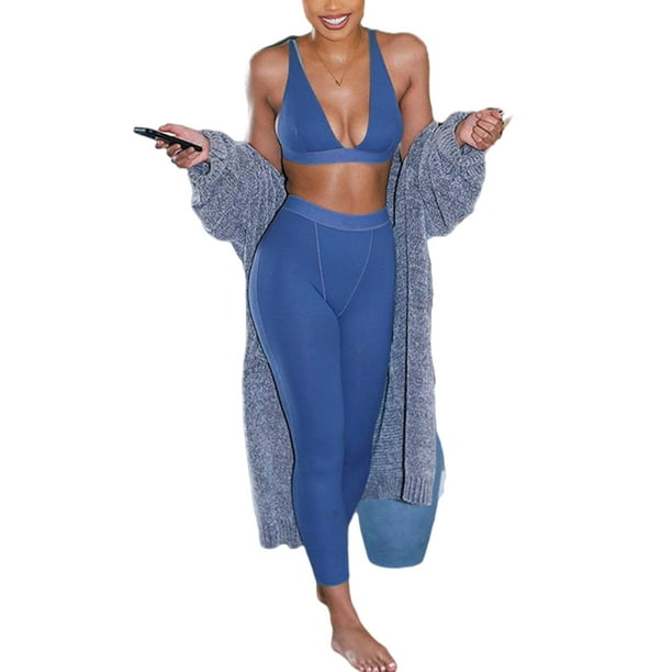 Avamo Womens Sexy Two Piece Tracksuit Set Sleeve Low Cut Crop Tops And Bodycon Sweatpants Sweatsuit Jogger Workout Bra Set Walmart Com